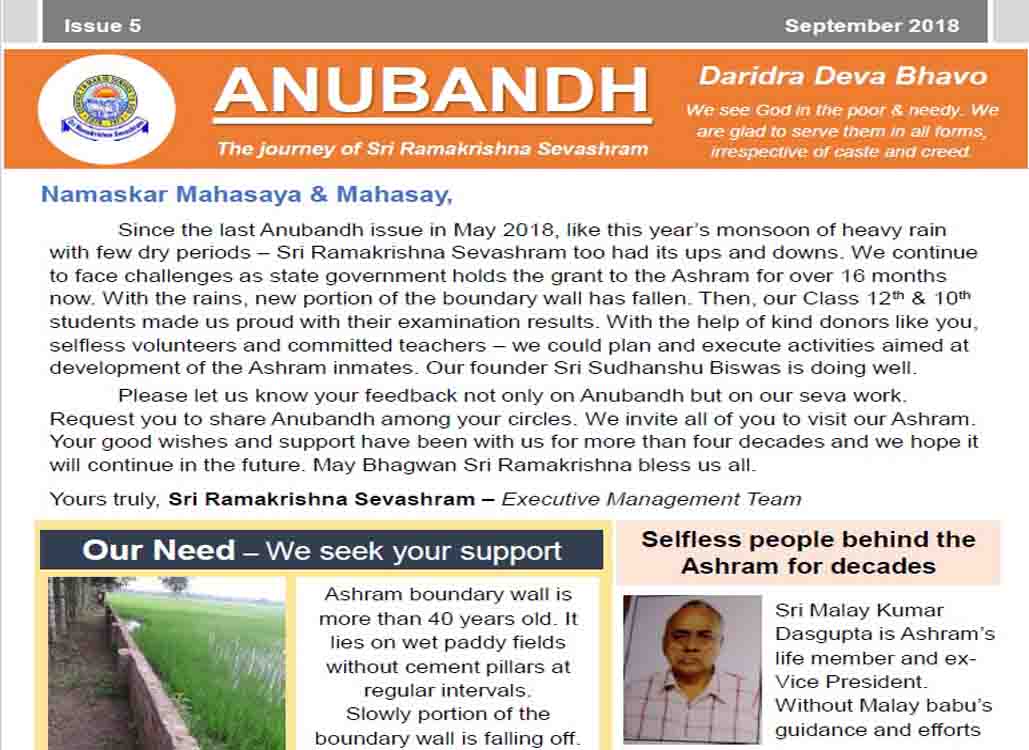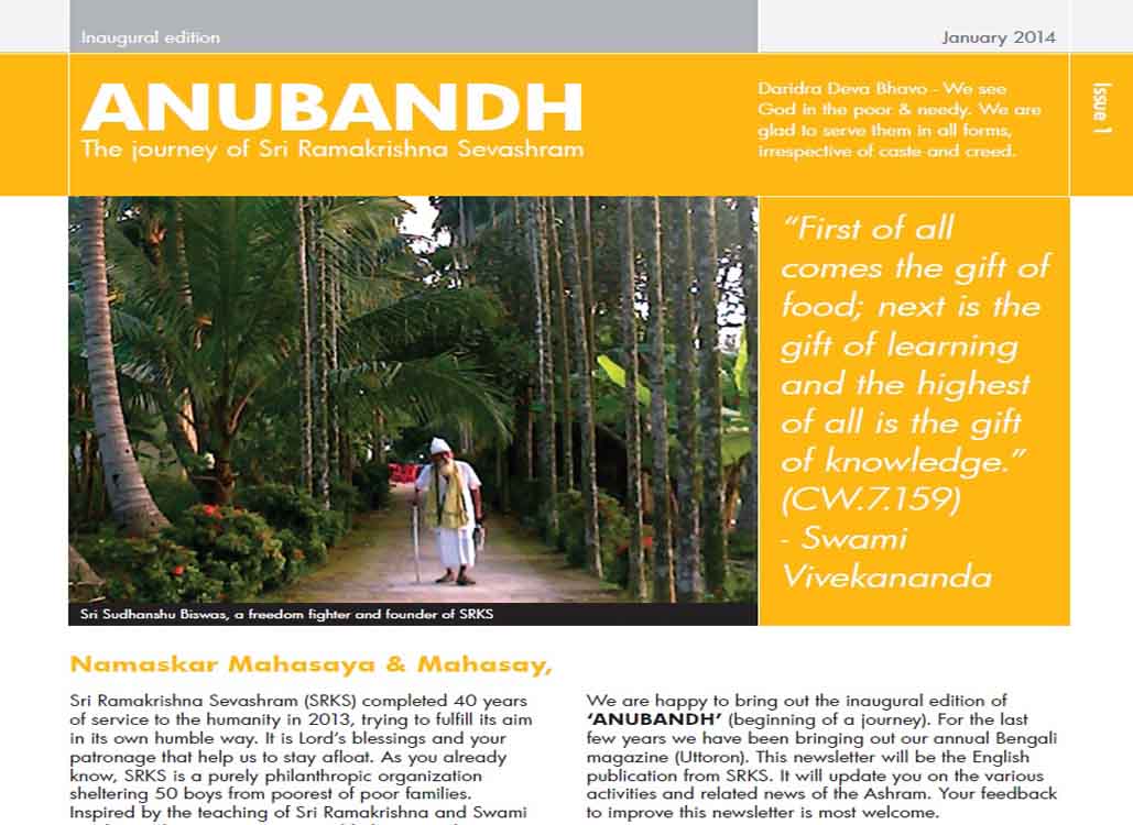 ANUBANDH The journey of Sri Ramakrishna Sevashram is the English Publication of the Ashram.